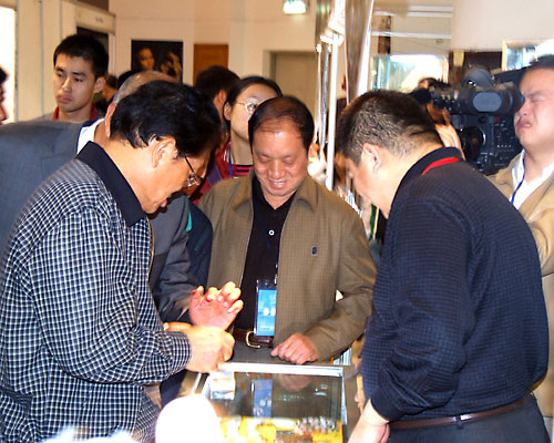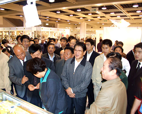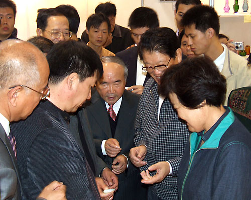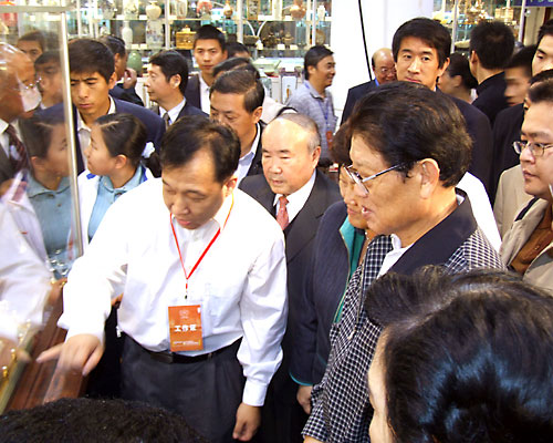 作为中国工艺美术协会名誉理事长的全国人大常委会副委员长李铁映10月29日上午到了博览会现场,在一号展馆3号展厅参观完中工美拍卖公司的《圆明园金玉大水法》后,专门来到了新疆展位,对新疆的民族工艺品和田玉雕作品给予了很高的评价,肯定了新疆在工艺美术事业中取得的成绩,同时也从意识形态和艺术美学的高度为中国工艺美术事业提出了更高的要求。