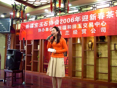 新疆宝玉石协会2006年迎新春茶话会于1月8日在人民饭店举行,本次活动得到了新疆和田玉交易中心和锦兰经贸公司的协办支持。
