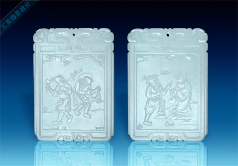 子刚制玉挂件,形若方形或长方形,宽厚敦实,犹如牌子,故简称为“子刚牌”。子刚牌的特殊魅力,体现在别开生面的形态上,精美的玉质上,精细的雕工于一体的艺术风范,领略到陆子刚玉雕的艺术风采。方形的子刚牌 ,非新疆和阗佳料不用,洁白无瑕,滋润温柔,花纹图案出类拔萃,以高超的琢玉技艺,多作剔地阳纹,以浅浮雕形式,将书画图纹表现得曲尽其美,淋漓尽致。常常一画琢山水、花鸟、人物、走兽图,虽用琢玉工具碾出,仍不失画家的笔墨情趣;另一面雕刻诗文,龙飞凤舞,仿佛是名书家直接书写在其上,并琢有子刚印款。将中国的书画艺术镌刻在玉牌的正反两面,加上玲珑剔透的牌头装饰,具较高的观赏性,玩味无穷,是子刚牌存在欢迎的主要因素。